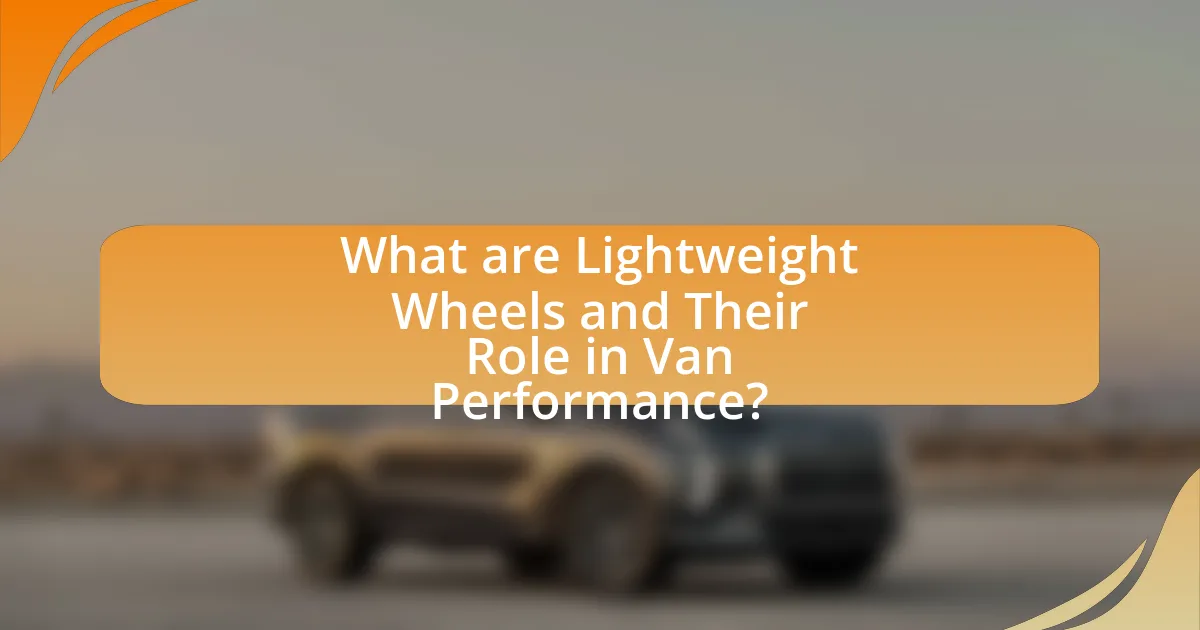 Lightweight wheels are wheels designed with reduced mass, typically made from materials such as aluminum or carbon fiber, which enhance a van’s performance by improving acceleration, handling, and fuel efficiency. The reduction in weight allows for less rotational inertia, enabling quicker acceleration and improved braking response. Additionally, lightweight wheels can enhance handling by providing better steering feedback and reducing the overall weight of the vehicle, which can lead to improved fuel economy. Studies have shown that reducing unsprung weight, such as that from wheels, can significantly enhance a vehicle’s dynamics, making lightweight wheels a crucial component in optimizing van performance.